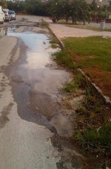 Ένας σωλήνας ύδρευσης έσπασε για άλλη μία φορά και ο δρόμος γέμισε λάσπες και νερά, με αποτέλεσμα να μην μπορεί α κυκλοφορήσει άνθρωπος στη γειτονιά χωρίς να λερωθεί.