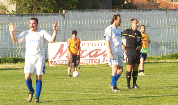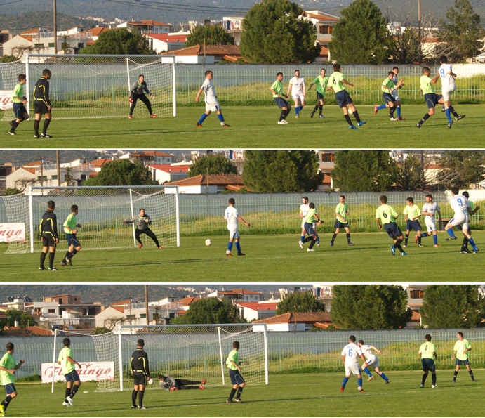 Εξι λεπτά αργότερα ο Γιώργος Μακρής και πάλι διπλασίασε τα γκολ της ομάδας του με σουτ έξω απ' την περιοχή (φωτό πάνω) που ξεγέλασε τον τερματοφύλακα του Αφρατίου