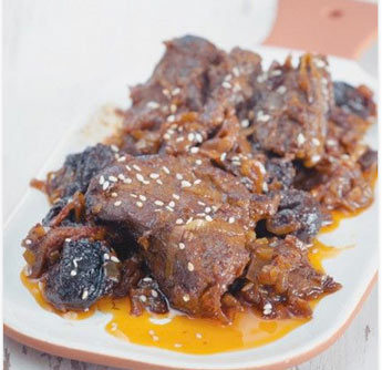 Μοσχαράκι στη γάστρα με δαμάσκηνα και κονιάκ