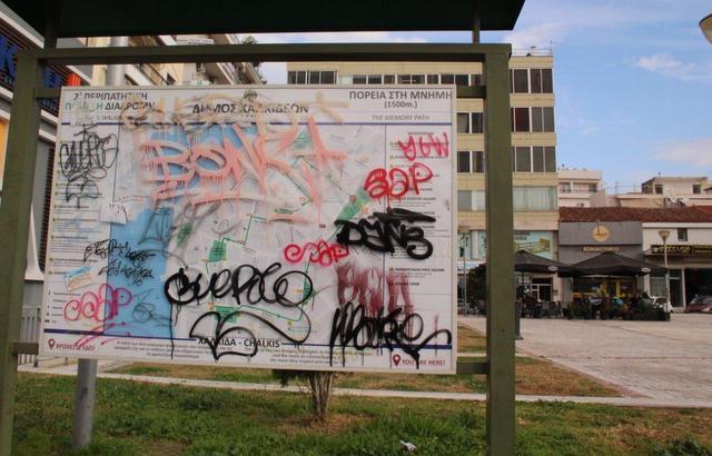 ΧΑΛΚΙΔΑ: Οι βάνδαλοι μουτζούρωσαν την ενημερωτική πινακίδα και στην πλατεία της Αγοράς