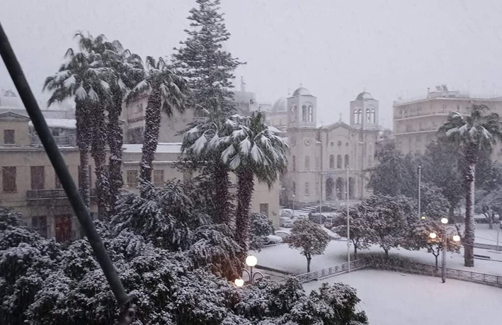 Σκεπάστηκε από το χιόνι η κεντρική πλατεία της Χαλκίδας