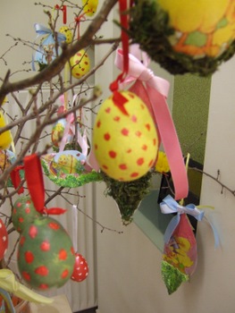 Τι χρειάζεστε: Κόλλες γλασέ πολύχρωμες, εργαλείο που ανοίγει τρύπα στα χαρτιά, κόλλα, πινέλο. Προαιρετικά βαφή αυγών.