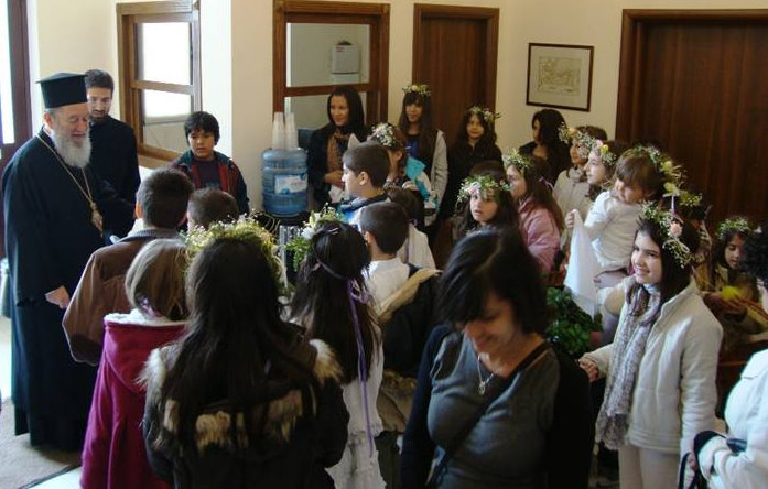 Ο Σεβασμιώτατος συνεχάρη για την πρωτοβουλία τα παιδιά και τις κατηχήτριες τους Ελένη Καρλατήρα, Ιουλία Λάζαρη, Κυριακή Παπαγρηγορίου και Στέλλα Δημητρέλου. Στη φωτό στιγμιότυπο από την επίσκεψη των παιδιών στο Μητροπολίτη.