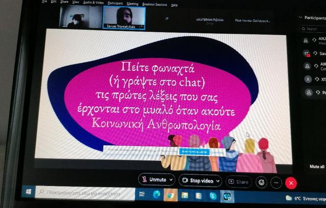 Η παρουσίαση έγινε στο πλαίσιο του εργαστηρίου για τον επαγγελματικό προσανατολισμό και ενημερώθηκαν διαδικτυακά οι μαθητές και μαθήτριες της Γ΄ τάξης για την επιστήμη της Κοινωνικής Ανθρωπολογίας.