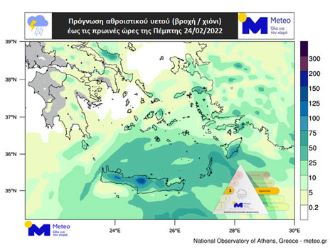 Σύμφωνα, ωστόσο με τα τελευταία προγνωστικά δεδομένα του Εθνικού Αστεροσκοπείου Αθηνών/meteo.gr, η κακοκαιρία αναβαθμίζεται σε κατηγορία 3 ως προς τον Δείκτη Επικινδυνότητας Επεισοδίου Βροχόπτωσης (Regional Precipitation Index – RPI) για Εύβοια, νότιο Αιγαίο και Κρήτη.