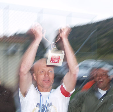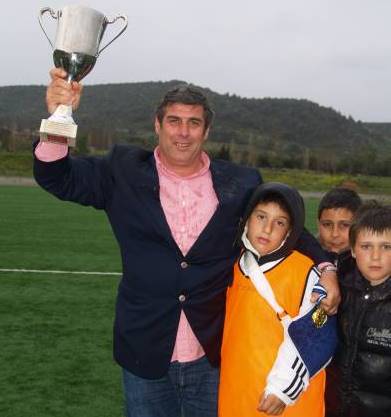 Φυσικά μετά το Γιάννη Σούρα, το κύπελλο πήρε αγκαλιά συγκινημένος ο προπονητής και ιδρυτής της ομάδας Γιάννης Βογιατζής (πάνω), ενώ δεν ήθελε να τ' ...αφήσει από τα χέρια του ο τρίτος ...Γιάννης της παρέας, ο πρόεδρος της Ακαδημίας κ. Ζάχος (φωτό κάτω)