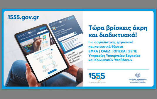 Σε λειτουργία τέθηκε η ιστοσελίδα του 1555 – 1555.gov.gr, του Ενιαίου Αριθμού Εξυπηρέτησης Πολιτών για εργασιακά, ασφαλιστικά και κοινωνικά θέματα του Υπουργείου Εργασίας και Κοινωνικών Υποθέσεων και των εποπτευόμενων φορέων ΕΦΚΑ, ΟΑΕΔ και ΟΠΕΚΑ.