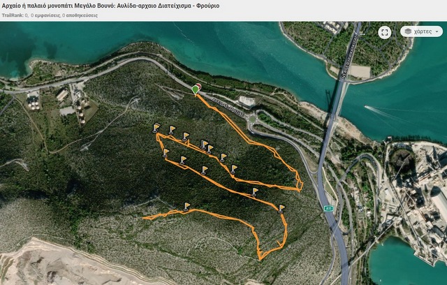 Μετά από μακρόχρονη έρευνα έχω εντοπίσει τις θέσεις του αρχαίου ή παλαιού μονοπατιού το οποίο οδηγεί από την Αυλίδα (πιθανόν από το Ναό Αυλιδείας Αρτέμιδος) στο αρχαίο Διατείχισμα και στο Φρούριο του Μεγάλου Βουνού, σχεδόν σε όλο το μήκος της διαδρομής του.