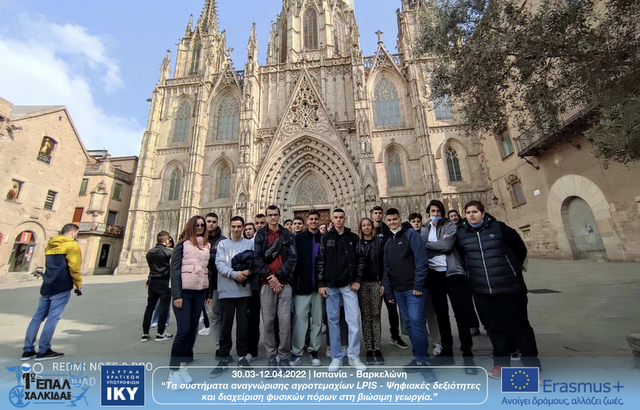 Σε χρονικό διάστημα 15 ημερών, από 30 Μαρτίου έως και 12 Απριλίου, 19 μαθητές/τριες των τομέων Γεωπονίας, Δομικών Έργων και Πληροφορικής του 1ου ΕΠΑΛ Χαλκίδας βίωσαν μια μοναδική επιμορφωτική εμπειρία στην πόλη της Βαρκελώνης με κύρια χαρακτηριστικά τόσο την κατάρτιση στα Συστήματα Γεωγραφικών Πληροφοριών (GIS) όσο και με την συμμετοχή τους σε πολιτιστικές δραστηριότητες.