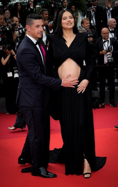 Η Adriana Lima με μαύρη cut-out δημιουργία του οίκου Balmain, στην πρεμιέρα του Top Gun: Maverick.