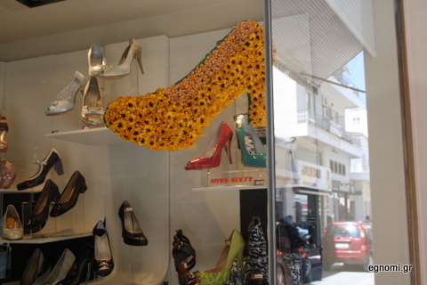 Καιρό είχαμε να δούμε κάποια πρωτοτυπία σε βιτρίνα καταστήματος στη Χαλκίδα και την είδαμε στο Loustrini στην οδό Αβάντων. Όπως βλέπετε και στη φωτογραφία, πρόκειται για την... Μαγιάτικη γόβα.