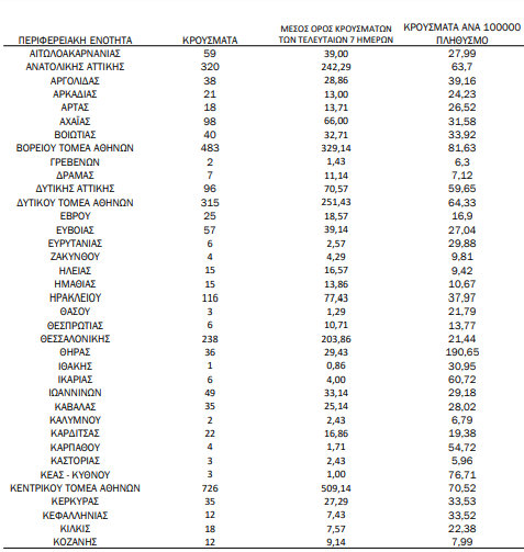 Αναλυτικά η κατανομή των κρουσμάτων, ανά περιφερειακή ενότητα της Στερεάς Ελλάδας, έχει ως εξής (σε παρένθεση τα χθεσινά νούμερα):