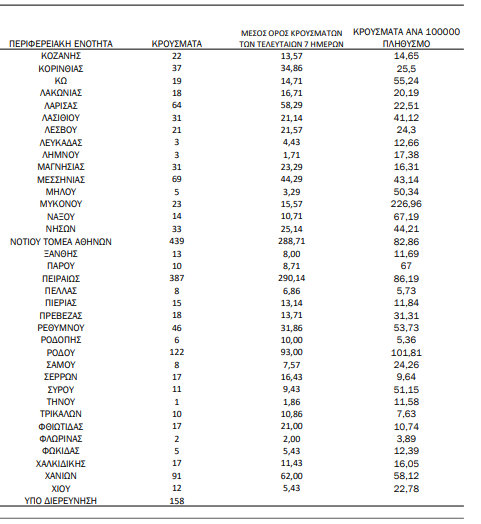Αναλυτικά η κατανομή των κρουσμάτων, ανά περιφερειακή ενότητα της Στερεάς Ελλάδας, έχει ως εξής (σε παρένθεση τα χθεσινά κρούσματα):
