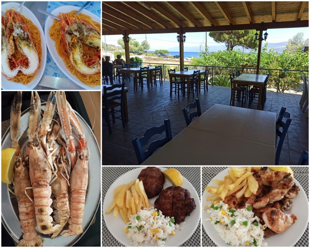 Στην ταβέρνα Αιγαίο έρχεσαι μετά τις βουτιές για... πλούσιες μερίδες! Η κα Σοφία φτιάχνει με τα χεράκια της φρέσκες καραβίδες ψητές, αστακομακαρονάδα, καραβιδομακαρονάδα, αλλά δεν αφήνει παραπονεμένους τους κρεατοφάγους: Μπριζόλα καλοψημένη, μπιφτεκάκια χειροποίητα και φιλέτο κοτόπουλο είναι μόνο μερικά από αυτά που μαγειρεύει καθημερινά.
