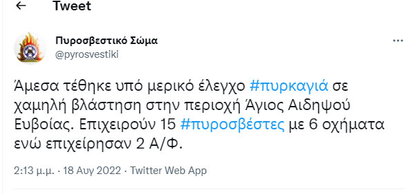 Δείτε και το σχετικό tweet της Πυροσβεστικής Υπηρεσίας: