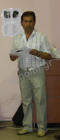 Παράλληλα, το τοπικό μουσικό σχήμα «Οι δραπέτες» τραγούδησε τραγούδια του Ελύτη και με τη μουσική του δημιούργησε μια ζεστή ατμόσφαιρα. Ψυχή της εκδήλωσης ήταν ο καθηγητής Γιώργος Κακόγιαννης (φωτό αριστερά). Είχε το ρόλο του συντονιστή, ενώ με μοναδικό τρόπο διάβασε ποήματα του Ελύτη και ανέδειξε το περιεχόμενό τους.