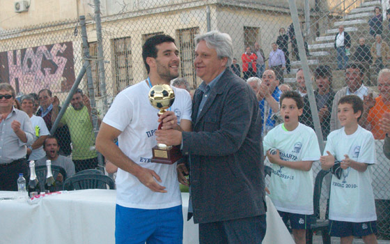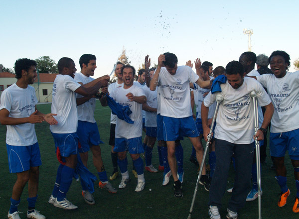 Αμεσως μετά τη λήξη του αγώνα άνοιξαν οι σαμπάνιες ενώ ο δήμαρχος Δημήτρης Θωμάς και συμπαραστάτης της στη μέχρι τώρα προσπάθειά της ομάδας είχε ...προετοιμάσει και την απονομή του κυπέλλου στους πρωταθλητές.
