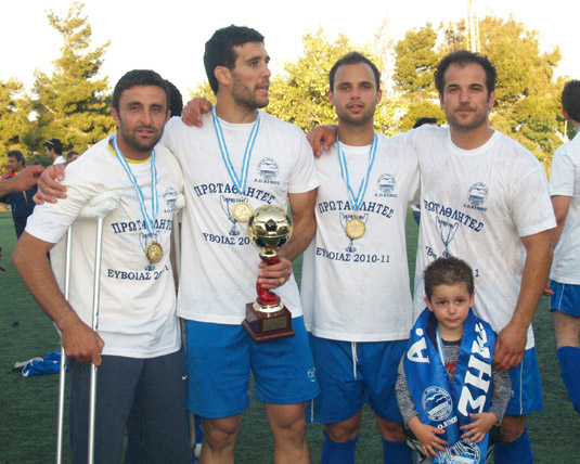 Σήμερα στα πλαίσια του μηχανοκίνητου αθλητισμού γίνεται η Αναβαση της Κύμης, αλλά χθες η ποδοσφαιρική ομάδα της πόλης γιόρτασε την ...άναβασή της στη Δ' Εθνική. Το μεγάλο άλμα το διεκδικησε και τα προηγούμενα τρία χρόνια (δεύτερη πέρσι και το 2008 και τρίτη το 2009). Την τρέχουσα περίοδο έδειξε ότι δεν θα πάει ...χαμένη και η τέταρτη χρονιά. Κράτησε τα πρωτεία σ' όλη τη διαρκεια του πρωταθλήματος και χθες μετά τη νίκη της επί του Ολυμπιακού (3-0) είναι και μαθηματικά πρωταθλήτρια Εύβοιας.