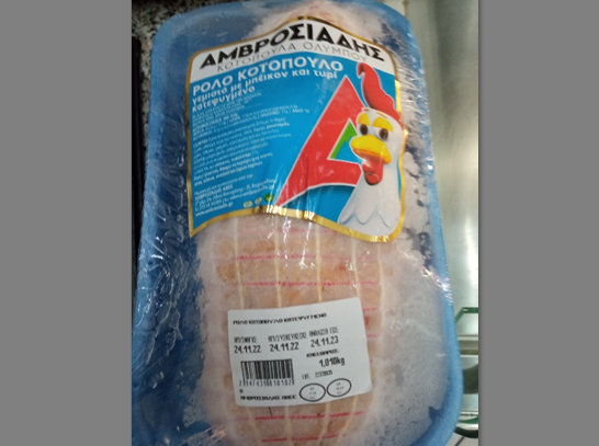 "Ο Ε.Φ.Ε.Τ και ειδικότερα η Περιφερειακή Διεύθυνση Ηπείρου, κατά τη διενέργεια ελέγχων στο πλαίσιο του Προγράμματος “Επίσημος έλεγχος Μικροβιολογικών κριτηρίων ασφάλειας τροφίμων” έτους 2022, προέβη σε δειγματοληψία παρασκεύασματος κρέατος, με τα στοιχεία: «ΑΜΒΡΟΣΙΑΔΗΣ - ΡΟΛΟ ΚΟΤΟΠΟΥΛΟ γεμιστό με μπέικον και τυρί κατεψυγμένο», με ημερομηνία σφαγής και συσκευασίας 24-11-22 και ανάλωση έως 24-11-23, που παράγεται από την εταιρεία ΑΜΒΡΟΣΙΑΔΗΣ Α.Β.Ε.Ε.