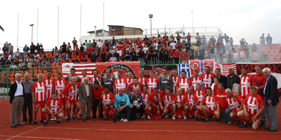 Μέσα σε μαγικό κλίμα που είχαν δημιουργήσει 1.000 θεατές, οι παλαίμαχοι του Ολυμπιακού και του ΑΟΧ κοντραρίστηκαν για φιλανθρωπικό σκοπό: Την οικονομική ενίσχυση του παλιού ποδοσφαιριστή του ΑΟΧ Νίκου Παύλου (φωτό αριστερά).