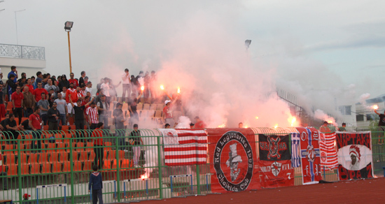 Εκπληκτική ατμόσφαιρα δημιούργησε η Θύρα 7 Χαλκίδας στο φιλικό μεταξύ των δύο ομάδων.