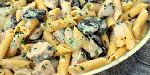 Πένες με μανιτάρια και ροκφόρ