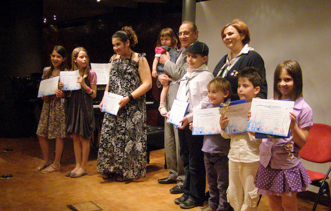 Στη φωτογραφία πάνω τα παιδιά που βραβεύτηκαν, μαζί με τον Βασίλη Θεοχαράκη και την Βούλα Παναγιώτου. Στην κάτω φωτό από αριστερά, η Χελάλ Μπούση, η Βούλα Παναγιώτου και ο Μιχάλης Παπαστεργιάδης.