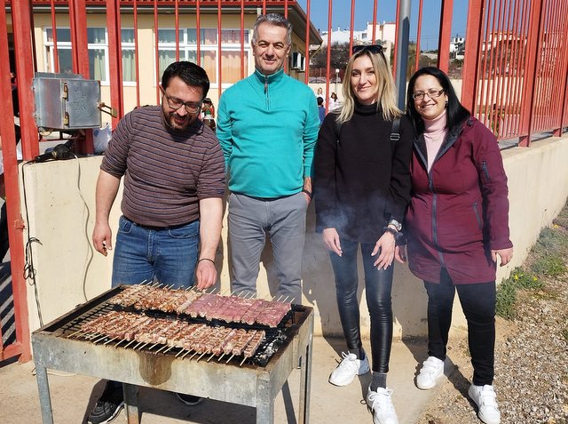 Μέλη του Συλλόγου Γονέων και Κηδεμόνων του Σχολείου, σε συνεργασία με εκπαιδευτικούς έψησαν για τους μαθητές πάνω από 450 σουβλάκια.