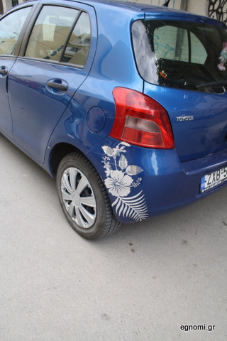 "Ανθισμένο" προφυλακτήρα αυτοκινήτου πρώτη φορά είδαμε ( στην οδό Κατσικογιάννη τον εντοπίσαμε) και ομολογουμένως μας εντυπωσίασε. Προφανώς ο/η ιδιοκτήτης του αυτοκινήτου είναι μερακλής και μπράβο! Δίνει μία ξεχωριστή νότα στην κίνηση.