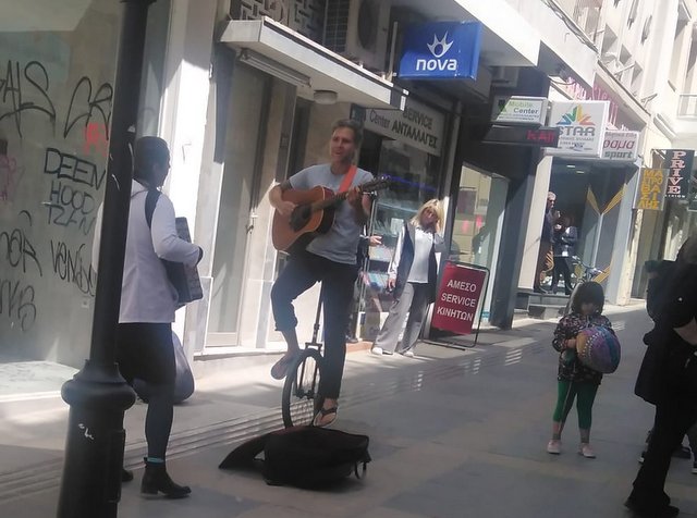 Οι μουσικοί του δρόμου πρόσθεσαν τις δικές τους ...πινελιές στον γιορτινό "πίνακα" της ημέρας, ενώ τα καφέ ήταν γεμάτα και δεν έβρισκες εύκολα καρέκλα, μετά τις 11 το πρωί.