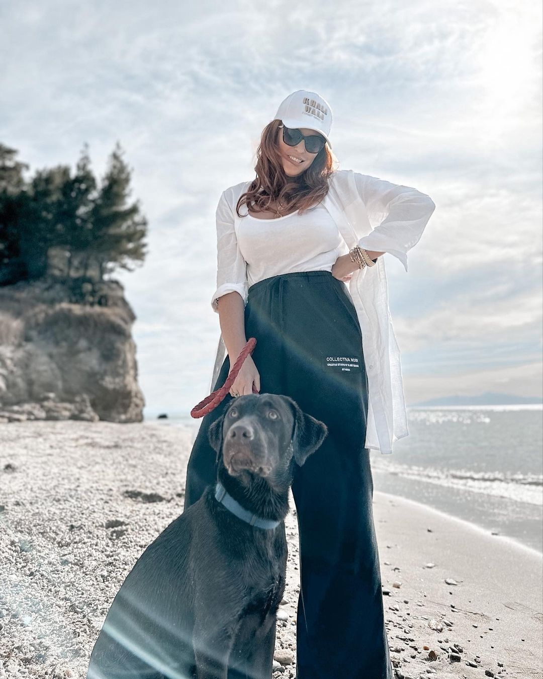 Η παρουσιάστρια το έκανε πράξη άλλη μία φορά με το χαλαρό πασχαλινό look που επέλεξε, για να κάνει μια χαλαρή βόλτα στην παραλία με τον αδερφό της και το σκύλο τους, όπου και συνδύασε τη φόρμα της με το κλασικό λευκό πουκάμισο.