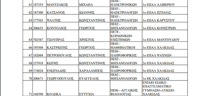 Στους πίνακες που ακολουθούν μπορείτε να δείτε όλα τα ονόματα των νέων διευθυντών/ντριών και τα σχολεία τους: