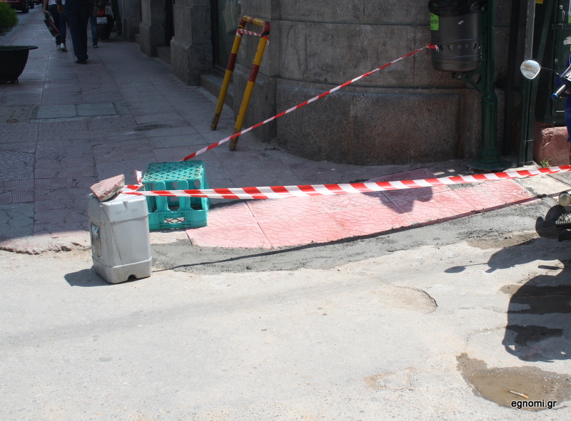 Συνεργεία παντού στην Αβάντων επισκευάζουν τα πεζοδρόμια.