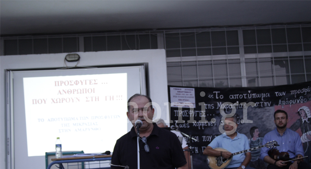 Το αποτύπωμα που άφησαν στην περιοχή τους οι πρόσφυγες της Μικράς Ασίας παρουσίασαν μαθητές και εκπαιδευτικοί του Λυκείου Αμαρύνθου σε μια συγκινητική εκδήλωση που έγινε το βράδυ της Τρίτης 28 Ιουνίου στο προαύλιο του σχολείο τους.