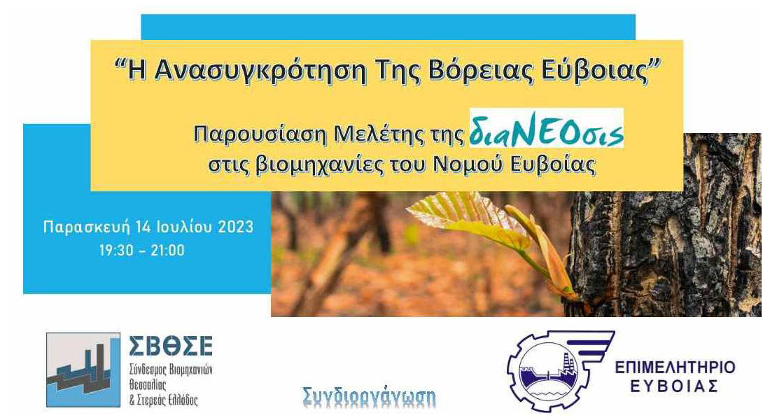 O Σύνδεσμος Βιομηχανιών Θεσσαλίας και Στερεάς Ελλάδας και το Επιμελητήριο Εύβοιας συνδιοργανώνουν εκδήλωση, με θέμα: "Η Ανασυγκρότηση της Βόρειας Εύβοιας".
