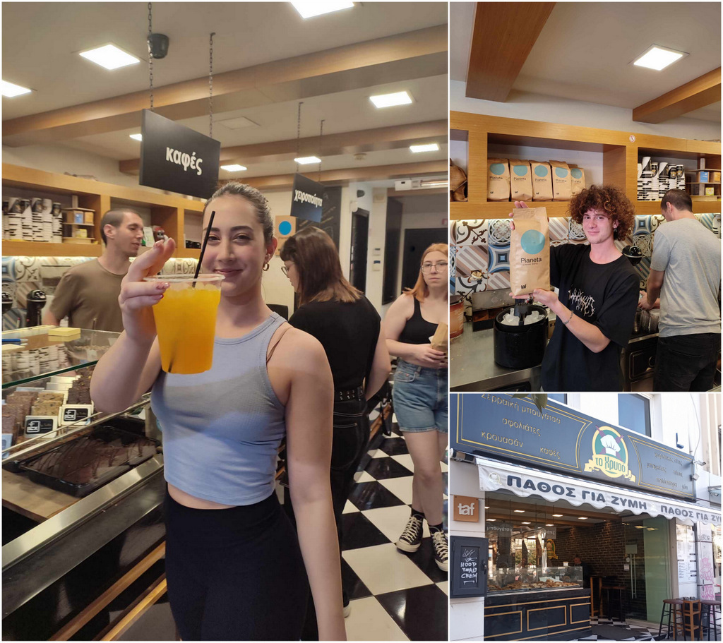 Ο ιδιοκτήτης Γιώργος Πεταχτής βάζει στο κατάστημά του μόνο χειροποίητα είδη, φτιαγμένα με αγνά υλικά. Φυσικά, μπορείς να πάρεις και το αγαπημένο σου καφεδάκι ή να καθίσεις στον όμορφο χώρο, που βρίσκεται ακριβώς δίπλα στο ναό (δες εδώ το στίγμα του).