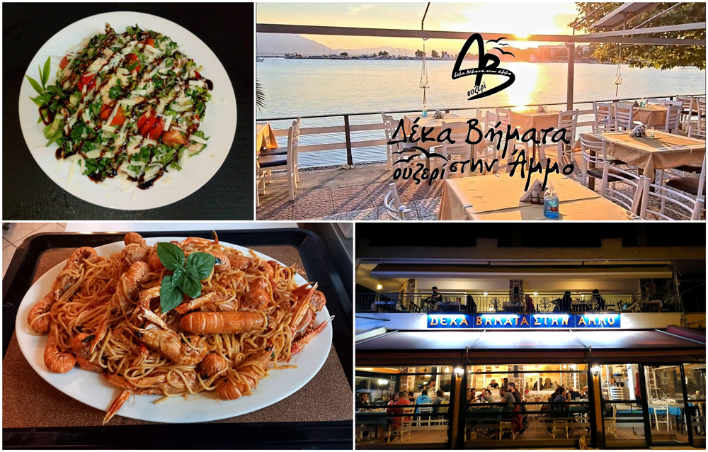 Ακόμη και τον πιο απαιτητικό να ρωτήσεις θα σου πει τα καλύτερα για το ουζερί "Δέκα βήματα στην άμμο". Θα σε κερδίσουν κατευθείαν ο πεντακάθαρος χώρος, η άψογη εξυπηρέτηση από το προσωπικό αλλά και η μοναδική θέα είτε στα τραπεζάκια πάνω στο κύμα είτε στη βεράντα.. Δες εδώ το στίγμα του στον χάρτη.
