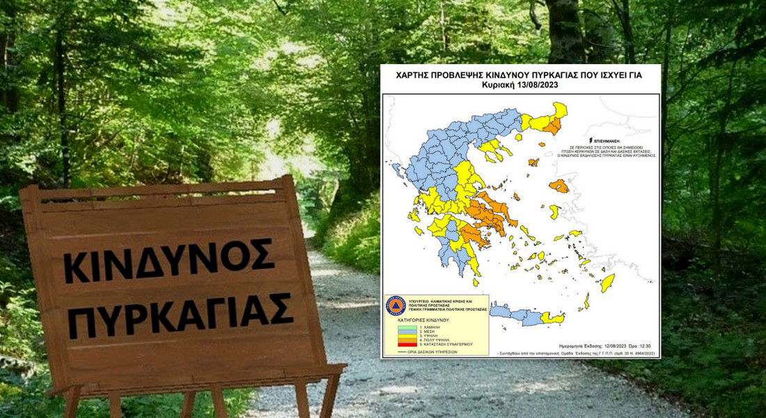 Σύμφωνα με τον χάρτη πρόβλεψης κινδύνου πυρκαγιάς που ισχύει για την Κυριακή 13 Αυγούστου προβλέπεται Πολύ Υψηλός (κατηγορίας 4) Κίνδυνος Εκδήλωσης Πυρκαγιάς για όλο το νομό Εύβοιας.