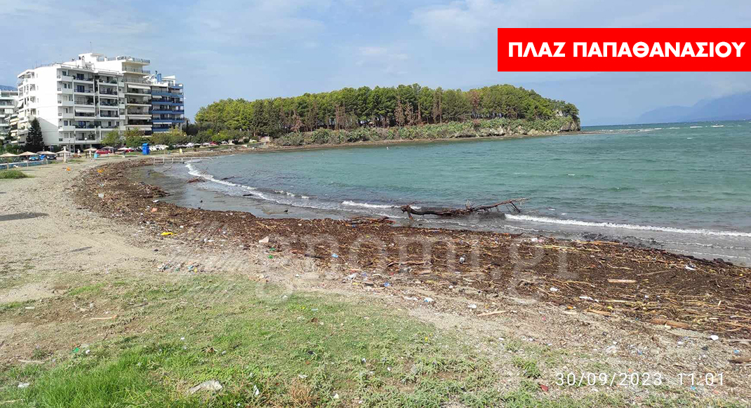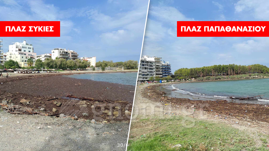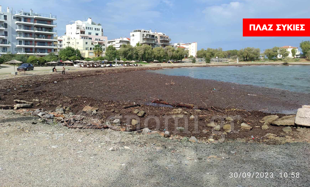 Χαρακτηριστικό παράδειγμα οι 2 κεντρικές πλαζ της πόλης, Συκιές και Παπαθανασίου, όπου έχουν ξεβραστεί στην αμμουδιά κάθε λογής σκουπίδια, κλαδιά, μέχρι και ολόκληροι κορμοί δέντρων.