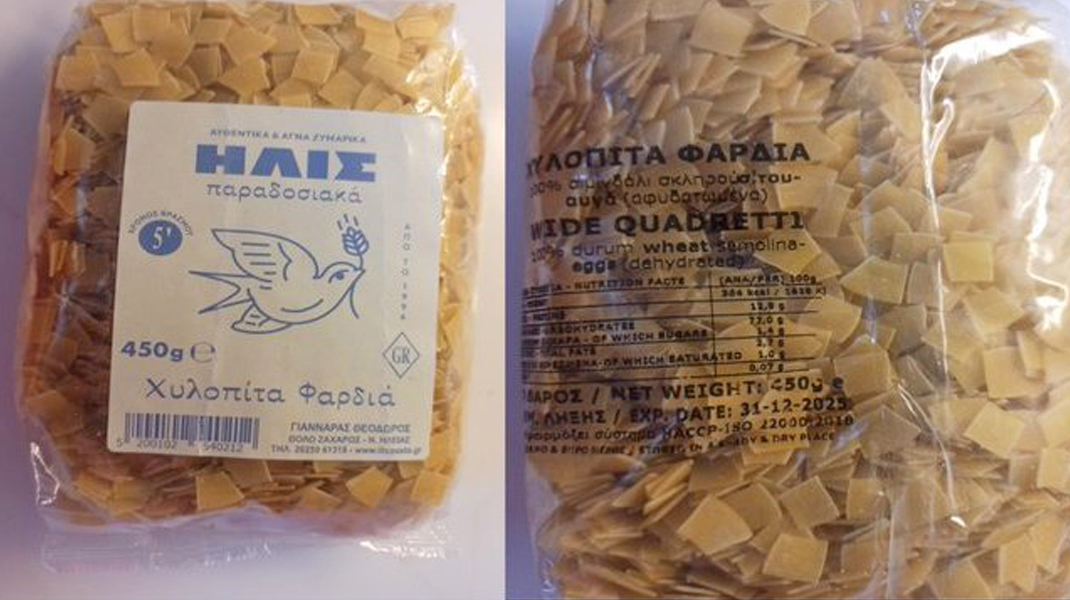 Πρόκειται για το προϊόν «ΗΛΙΣ Χυλοπίτα Φαρδιά» των 450 gr, στο οποίο βρέθηκαν ίχνη γάλακτος, λόγω επιμόλυνσης, χωρίς αυτό το ενδεχόμενο να αναγράφεται στα συστατικά με κατάλληλο τρόπο.