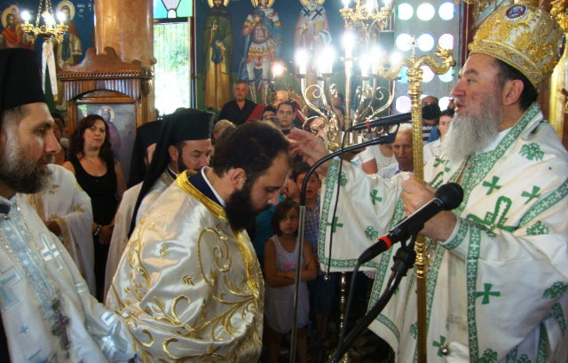 Στο τέλος της Θείας Λειτουργίας ο Μητροπολίτης απένειμε το οφφίκιον του Σακελλαρίου εις τον Εφημέριο της Ενορίας π. Γεώργιο Τσουνή (φωτό κάτω) και κάλεσε τα παρευρισκόμενα παιδάκια της Ενορίας νʼ αποκαλύψουν την αναμνηστική πλάκα, που ήταν εντοιχισμένη στην είσοδο της εκκλησίας.