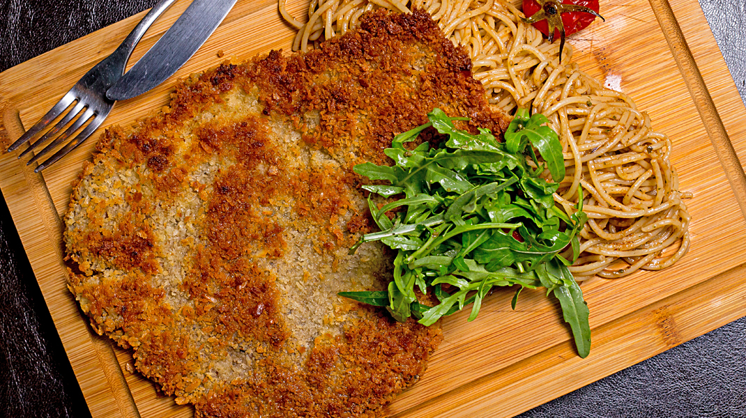 • 4 κομμάτια χοιρινό για σνίτσελ, 200 γραμ. το καθένα, χτυπημένα και ανοιγμένα καλά (μπορείτε να ζητήσετε από το χασάπη να σας τα ετοιμάσει)