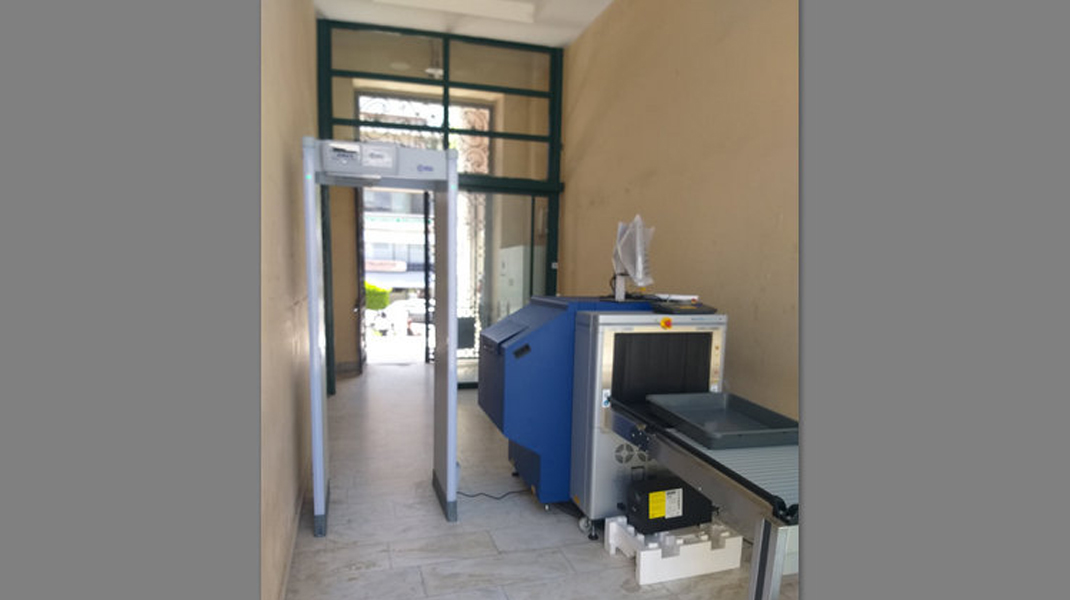 Πρόκειται για ένα σύστημα ελέγχου, παρόμοιο με αυτό που υπάρχει στα Δικαστήρια, ώστε να μπορεί να διαπιστωθεί αν μπαίνει κάποιος οπλισμένος στο Δικαστικό Μέγαρο, με σκοπό την αποφυγή έκνομων ενεργειών.