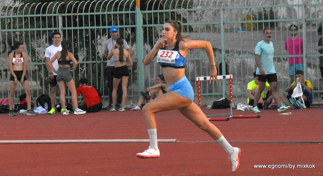400μ με εμπόδια, όπου κέρδισε την πρωτιά η Ελευθερία Μοναστηριώτη (με 64.07), ενώ τρίτη τερμάτισε η Ιρις Γεράση, η οποία εχει αγωνιστεί με τον ΓΣ Νεάπολης και έχει κερδίσει μετάλλια σε Πανελλήνιους Αγώνες.