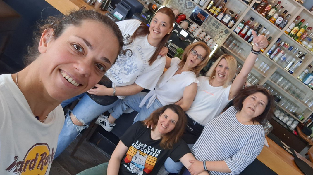 Η ιδιοκτήτρια, Δέσποινα Μυσίρη (δεξιά στη φωτό), και όλο το παρεάκι του νέου cafe - bar διαθέτουν πάντα την καλύτερη διαθέση για να βάλουν και εσάς σε καλοκαιρινούς ρυθμούς!