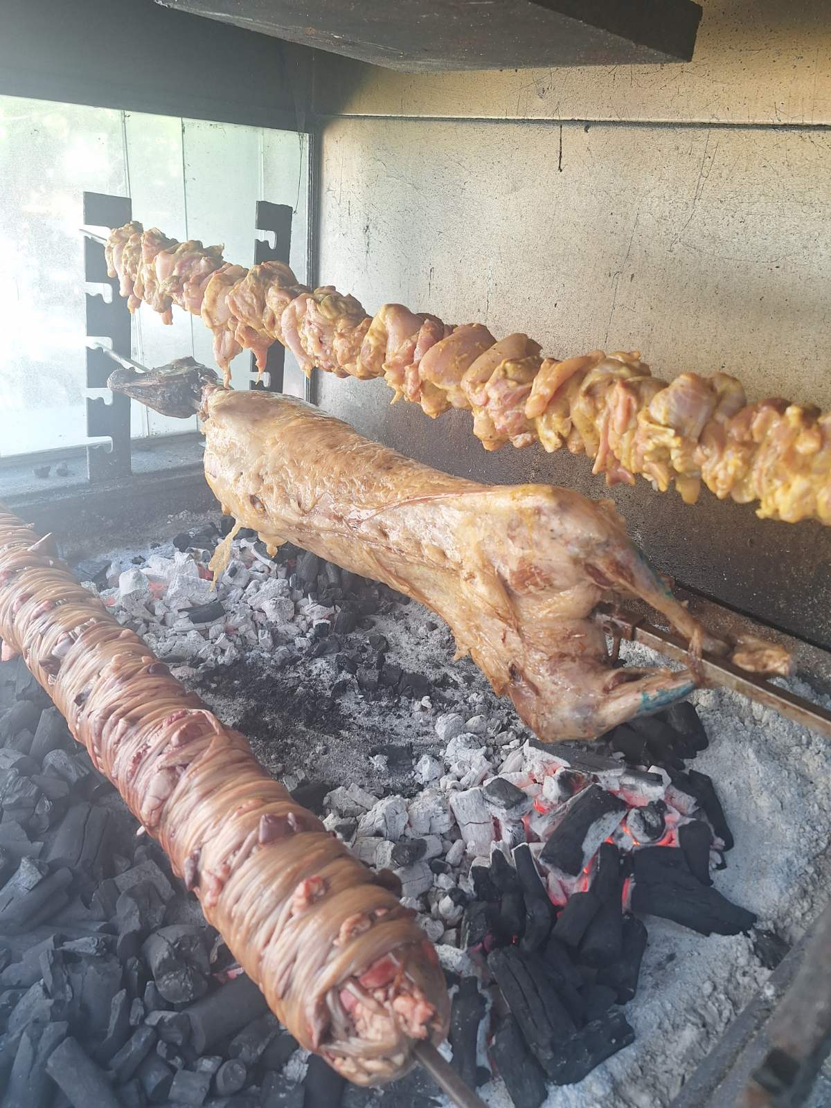 Ο ιδιοκτήτης, Γιώργος Σπύρου (φωτό πάνω), ξεκινάει από νωρίς να βάζει στη σούβλα εκλεκτά κρεατικά όλων των ειδών. Κατσικάκι, αρνί, κοντοσούβλι χοιρινό και κοτόπουλο, κοκορέτσι (φωτό κάτω), παϊδάκια προβατίνας και γάλακτος, μπριζόλες και ο,τι άλλο λαχταράει η όρεξή σας.