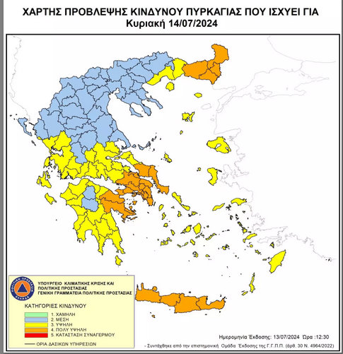 Σύμφωνα με τον χάρτη πρόβλεψης που εξέδωσε για την Κυριακή η Πολιτική Προστασία, ο κίνδυνος για φωτιές είναι πολύ υψηλός και κατατάσσεται στην κατηγορία 4 στην κεντρική και νότια Εύβοια.