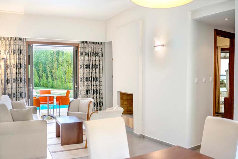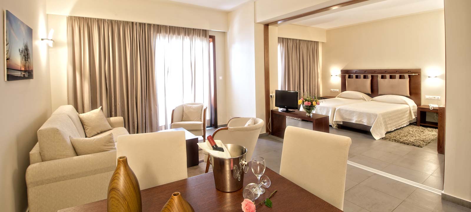 Επιπλέον παροχές: Pool Bar δίπλα στις πισίνες (ενηλίκων και παιδική) του ξενοδοχείου, δυνατότητα γευμάτων στο δωμάτιο με θέα το Αιγαίο, μεγάλος κλειστός χώρος στάθμευσης, εσωτερικός παιδότοπος.