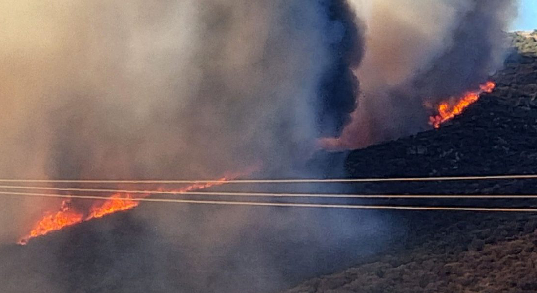 Η φωτιά μαίνεται ανάμεσα στις Πετριές και τα Κριεζά. Στη 1.30 τα χαράματα ήχησε το 112 καλώντας τους κατοίκους των περιοχών Κλιμάκι και Λιανή Άμμος να απομακρυνθούν προς Κριεζά.