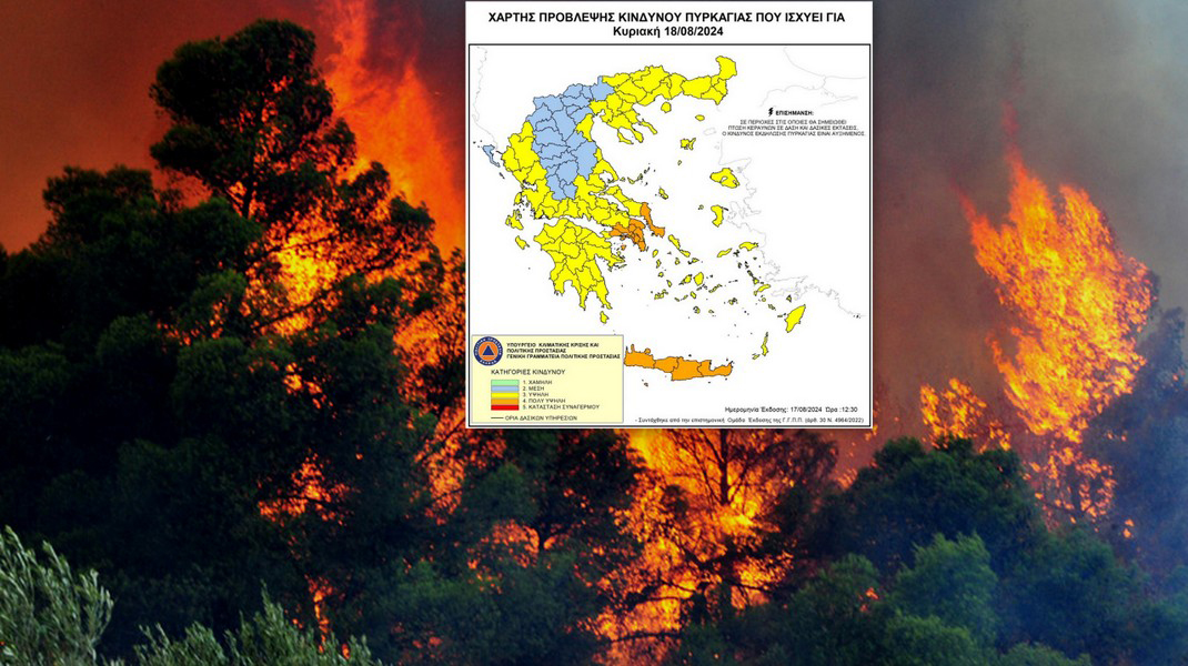 Σύμφωνα με το Χάρτη Πρόβλεψης Κινδύνου Πυρκαγιάς, που εκδίδει η Γενική Γραμματεία Πολιτικής Προστασίας του Υπουργείου Κλιματικής Κρίσης και Πολιτικής Προστασίας, για αύριο Κυριακή 18 Αυγούστου, προβλέπεται πολύ υψηλός κίνδυνος πυρκαγιάς (κατηγορία κινδύνου 4) στη Νότια Εύβοια.